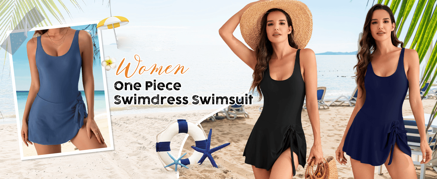 Swim dress for women with tummy control and full coverage swimsuit bottoms with side slit skirt that lightly covers your bottom and accentuates your curves. Shorts under the bottom of the skirt, moderate full coverage for the bottom. One-piece plus size swimsuit with skirt in unique style makes you more beautiful, fashionable, sexy and elegant.